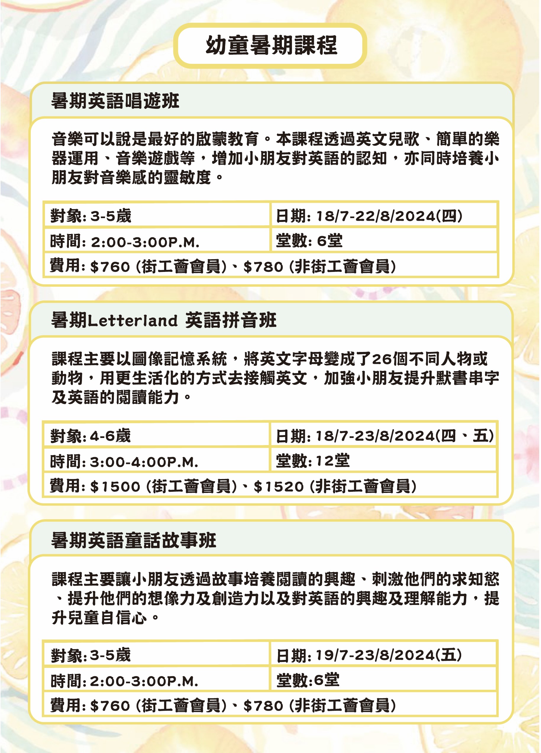 上課時間︰2:00-3:00P.M.(逢星期五)